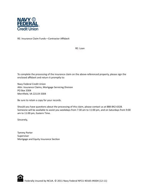 For more interesting idea about insurance claim fundsa contractor affidavit navy federal you can visit the original article by this link www.yumpu.com