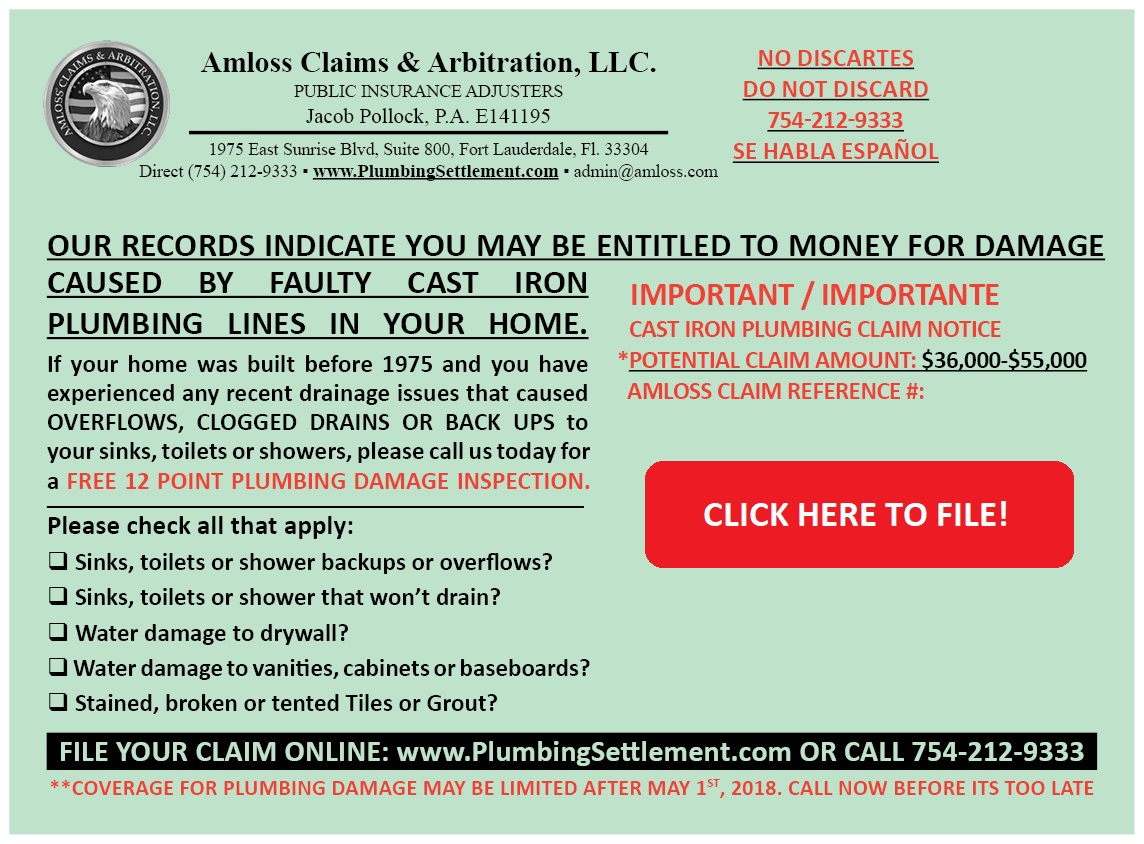 For more interesting idea about amloss claims arbitration cast iron pipe claims specialist you can visit the original article by this link www.amloss911.com