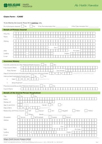 For more interesting idea about reimbursement claim form religare health insurance you can visit the original article by this link www.yumpu.com