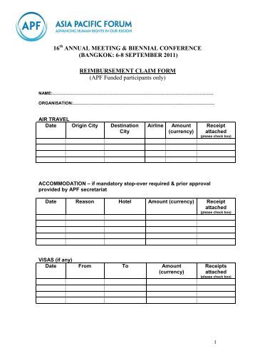 sample reimbursement form documents